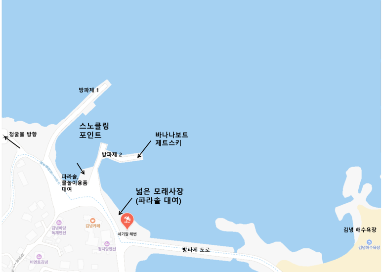 중앙의 방파제(2)에는 제트스키와 바나나보트등을 즐길 수 있는 장소가 있습니다.