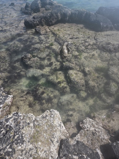 물이 서서히 깊어지지만 방파제를 따라 계속 들어가면 목까지 차는 깊이가 나타납니다.