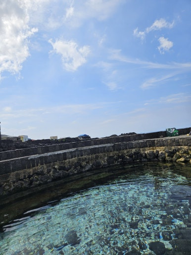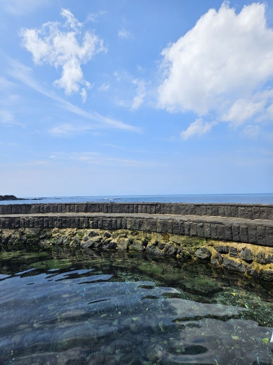 물통안의 용천수와 물통 밖의 푸른 바다와 파란 하늘, 흰 구름의 조화가 인스타 감성을 자극하는 포토스팟입니다.