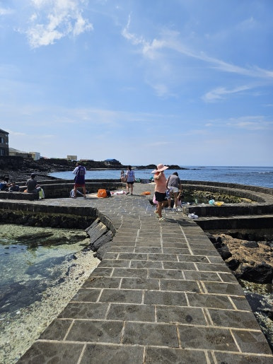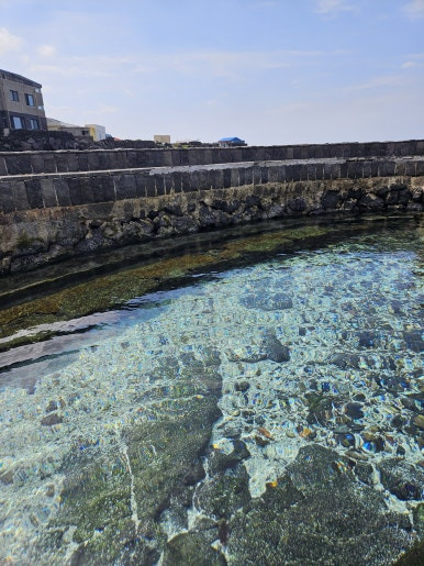 용천수와 밖의 바다를 오가면서 즐기고 있습니다.