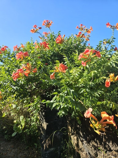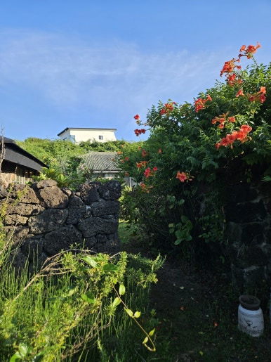 주변에는 돌담길을 따라 논밭도 있고, 주택가도 있고 카페들도 있습니다.