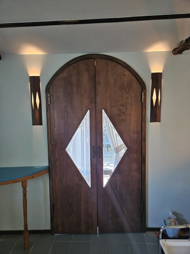 유리문을 닫고 건물 내부에 다시 나무문이 있습니다.