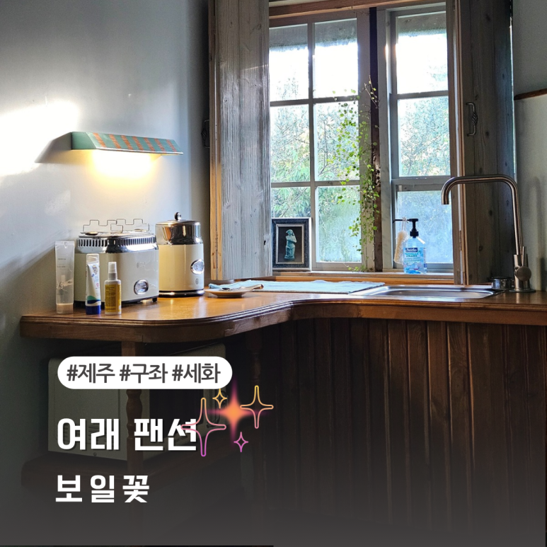 세화 해수욕장에서 걸어서 5분거리에 위치한 여래 보일꽃 펜션에 숙박하였습니다.