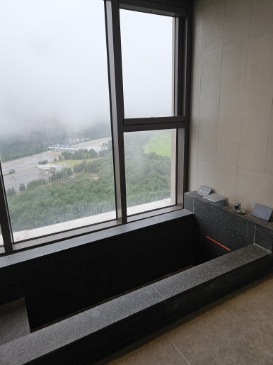 통창유리와 노천탕(?)이 있는 스파룸으로 이어지는 통로가 있습니다.