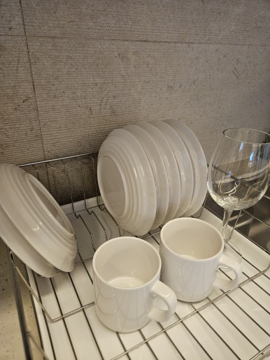미취사룸이지만 간단한 식기류, 컵, 과일포크와 전자렌지는 있습니다.