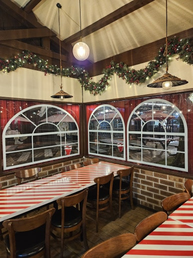 트리 바로 옆에 산타 레스토랑이 있습니다.