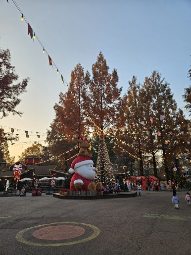 대형 산타인형과 크리스마스 트리는 인상적입니다.