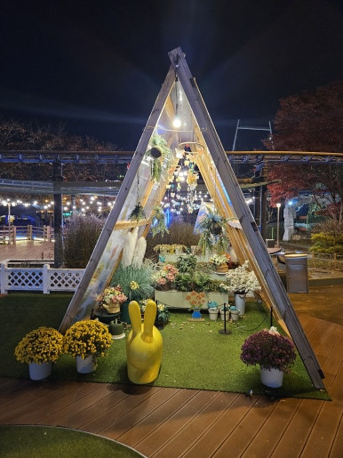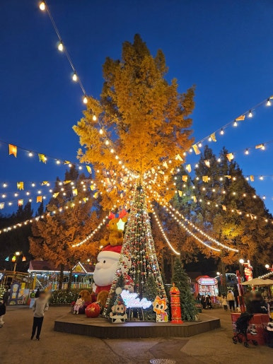 노란 단풍나무 아래 트리장식이 잘 어울립니다.