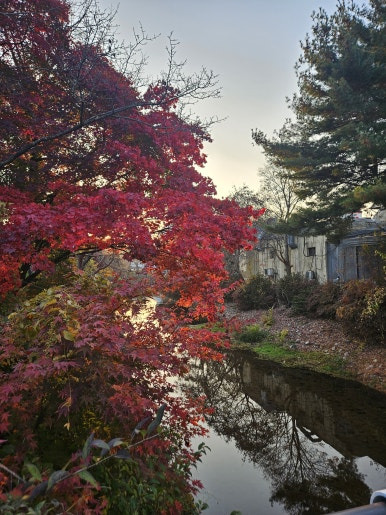 11월10일경 방문하여 빨강 단풍잎이 풍성하게 물든 아름드리 나무들이 종종 보였습니다.