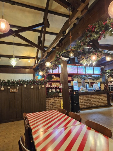 내부도 크리스마스 분위기가 물씬 풍기는 인테리어입니다.