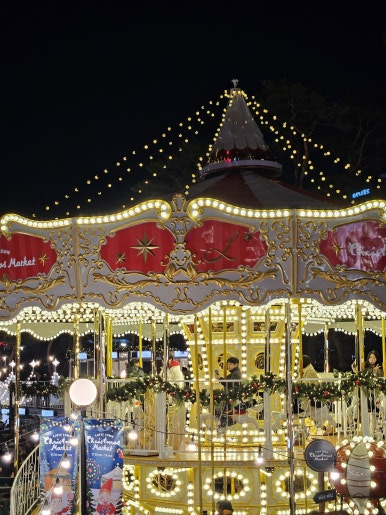 트리 옆의 2층으로 구성된 대형 회전목마도 이국적인 모습이 볼만합니다.