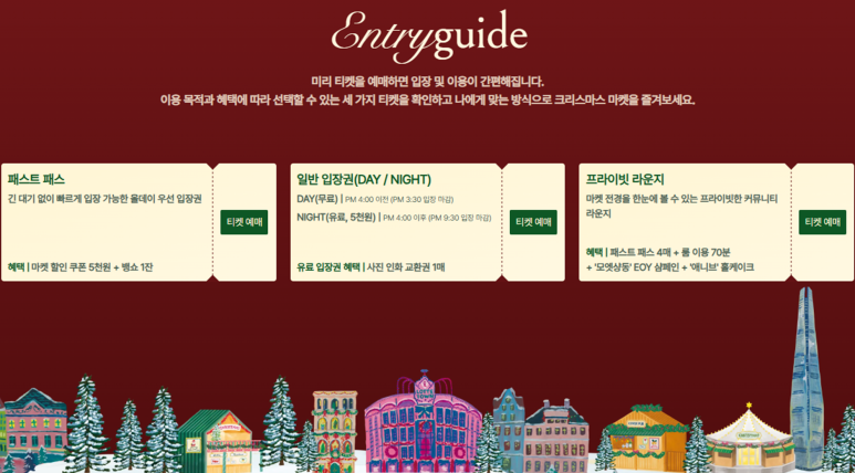 프라이빗 라운지가 있어서 입장 후에 마켓과 트리를 바라볼 수 있는 통유리 실내공간을 70분간 사용할 수 있는데 160,000만원~200,000만원입니다.