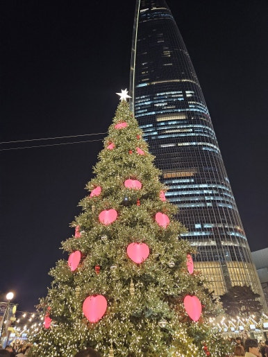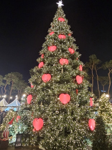 13m 높이의 커다란 트리와 반짝이는 조명으로 크리스마스 분위기를 듬뿍 느낄 수 있습니다.