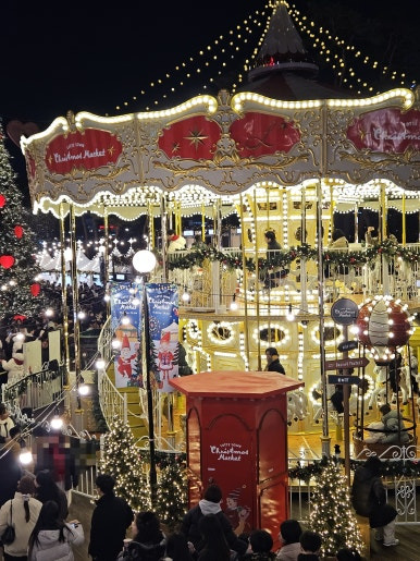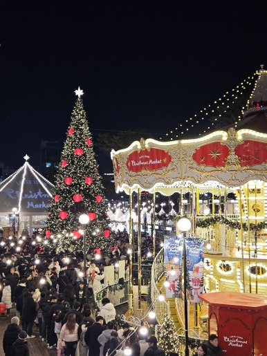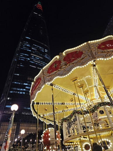 크리스마스 시즌 잠실 롯데타운에서는 트리와 회전목마가 반기는 마켓과 별빛 무도회가 펼쳐집니다.