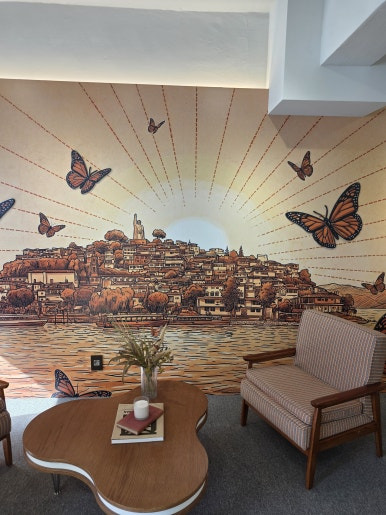 방문객들은 제왕나비의 장대한 이동 경로를 감각적으로 구현한